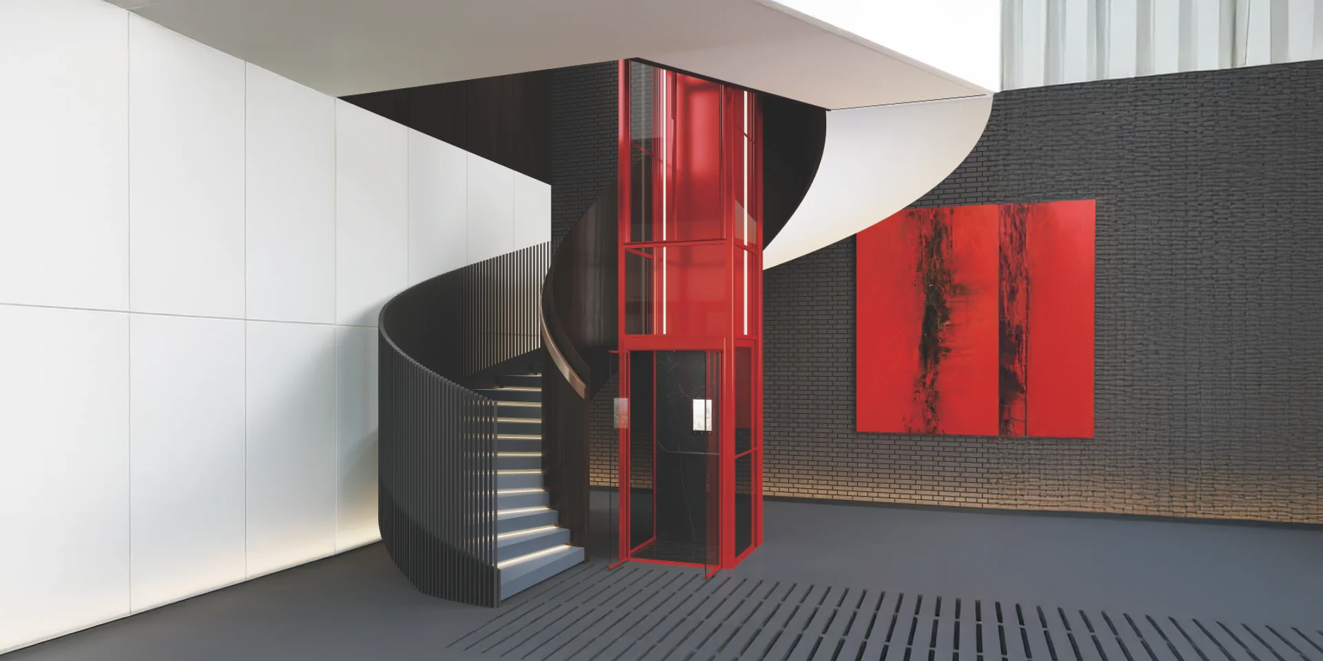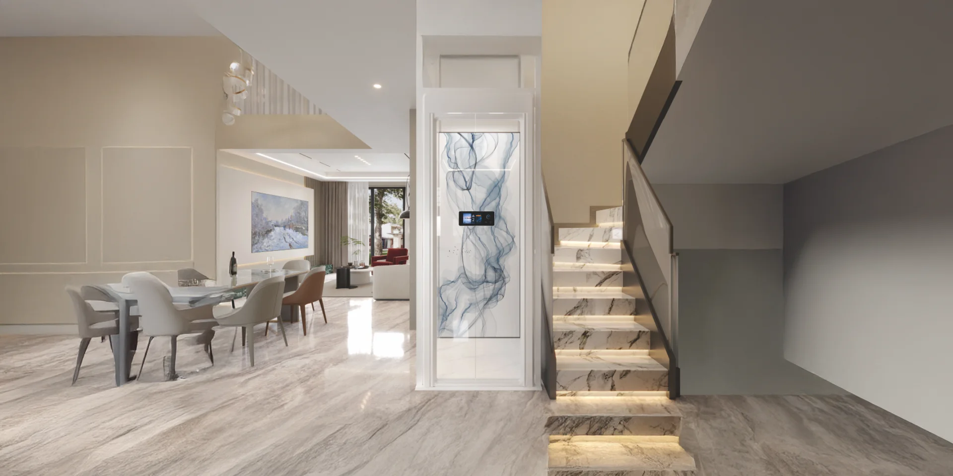 Four installation scenarios: Surround staircase, Indoor floor opening type, Hollow Hall Type, External shaft type. A professional team provides design and installation to meet personalized customization needs and create a high‑end luxury home living experience.